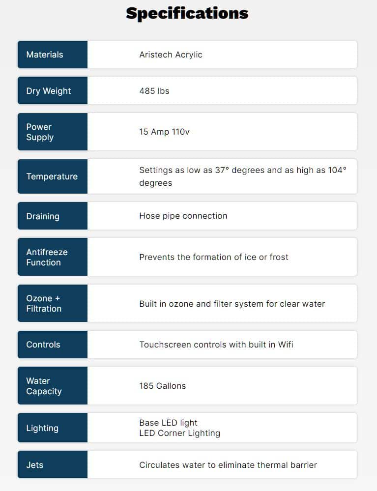 Our Ozone purification system keeps your water sparkling clean by oxygenating and circulating it through our unique Chill Tubs filters.