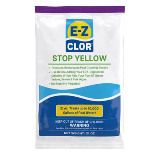 Get rid of stubborn mustard (yellow) algae with EZ Clor Stop Yellow – 21 oz bottle, a powerful, fast-acting treatment designed to eliminate and prevent yellow algae blooms in pools of all types.